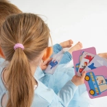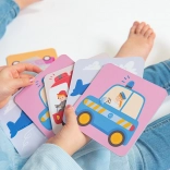 Teil des Sets sind inspirierende Aktivitätsideen: erste Paarspiele, erzählerische Spiele, das Nachahmen von Verkehrsmittelgeräuschen, Malen nach den Karten und Aufmerksamkeitstrainings. Das Spiel unterstützt die Entwicklung von Feinmotorik, Weltwissen und kommunikativen Fähigkeiten.