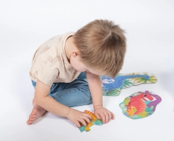 Entdecken Sie die Faszination des Puzzelns mit bunten Dinosauriern, die Kinder auf den ersten Blick begeistern. Große, stabile Teile sind kleinen Händen angepasst, und clevere Schlossformen führen Kinder zur richtigen Lösung. Jeder Dinosaurier ist ein eigenes Puzzle mit vereinfachter Form für leichtes Verständnis.