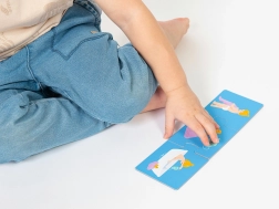 Stabile Teile aus 2 mm Karton lassen sich leicht greifen und behalten gut ihre Form – ideal für das erste Puzzle und das Training der Feinmotorik.
