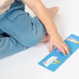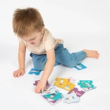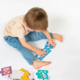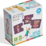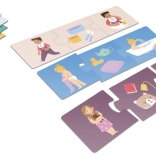 Véééliké Puzzle Trio Mein Tag ist ein cleveres und unterhaltsames Lernspiel, das Kinder durch ihre täglichen Aktivitäten führt. Jedes Trio hat den gleichen farbigen Hintergrund und dank identischer Verbindungen lassen sich Geschichten auf mehrere Arten zusammensetzen – Kinder trainieren so Kategorisieren, Zuordnen und selbstständiges Denken.