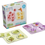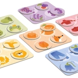 Es enthält Tipps für Eltern zur Erweiterung des kindlichen Wortschatzes: Beschreibung der Lebensräume von Tieren, wie Obst schmeckt, wann Kleidung verwendet wird usw. Dank der farbenfrohen Illustrationen ist das Spielen unterhaltsam und anregend und fördert Konzentration sowie Zusammenarbeit der Kinder.