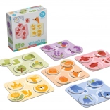 Sechs farbige Tafeln und passende Chips helfen Kindern, Farben und Formen zu erkennen und Bilder auf natürliche, spielerische Weise mit ihren Schatten zu verbinden.