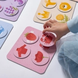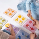 Die Kinder legen die Chips entsprechend den Konturen und Farben, wodurch sie visuelle Unterscheidung, Aufmerksamkeit und Zuordnungsfähigkeit trainieren.