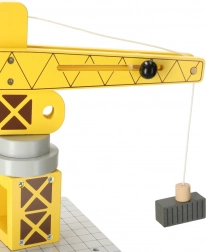 Der Kran ist das zentrale Element, das Kindern ermöglicht Container zu drehen und anzuheben, wodurch die Arbeit eines echten Hafenstaplers simuliert wird.