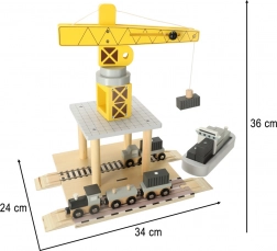 Kinder werden diesen hölzernen Hafenturmkran lieben, der ihnen die Möglichkeit bietet, Container von Schiffen auf Autos und Züge zu verladen. Dieses Set bietet viele Komponenten, die das Spielen verschiedener Szenarien ermöglichen und die Fantasie und manuellen Fähigkeiten Ihres Kindes fördern.
