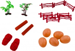 Dinosaurierfiguren, Zubehör (Bäumchen, Zäune, Eier u. a.)