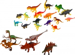 Bunte Dinosaurierfiguren aus Kunststoff, ergänzt durch Zubehör, fördern Fantasie und Lernen im Spiel.