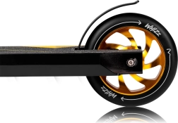 Dank des HIC-Kompressionssystems ist die Verbindung von Gabel und Klemme außergewöhnlich fest und zuverlässig. Polyurethan-Räder in Kombination mit ABEC-9-Lagern sorgen für einen geschmeidigen und schnellen Lauf, während die Hinterradbremse und das rutschfeste Deck die Sicherheit erhöhen. Der Durchmesser von 110 mm bietet eine ideale Balance aus Geschwindigkeit und Agilität.