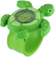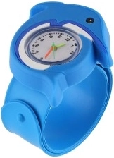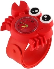 Lustige Kinderuhr mit Motiven von Meerestieren für leichtes Erlernen der Uhrzeit und komfortables Tragen. Dank des selbst aufrollenden (Slap) Silikonarmbands lässt sich die Uhr mit einem einzigen „Schwung“ anlegen. Farblich unterschiedliche Zeiger helfen Kindern, die Uhrzeit besser abzulesen, und die integrierte LR626-Batterie ermöglicht den sofortigen Einsatz. Es stehen 5 fröhliche Motive zur Auswahl – Delfin, Seestern, Schildkröte, Hai und Krabbe.