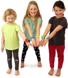 • Bequemes Slap-Armband aus Silikon – schnelles Anlegen, sicherer Halt, passend für die meisten Kinderhandgelenke.