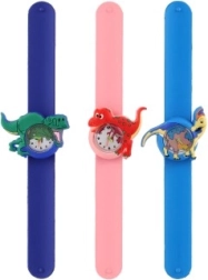 Die Kinderuhr mit Dinosauriermotiv verbindet Spaß und Funktionalität. Das selbstschließende Slap-Armband legt sich nach einem leichten „Klaps“ automatisch um das Handgelenk, sodass Kinder die Uhr ohne Hilfe von Erwachsenen anlegen können. Farblich verschiedene Zeiger erleichtern das Lernen der Uhrzeit und fördern Feinmotorik und Selbstständigkeit.
