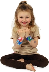 Ein leichter „Klaps“ aufs Handgelenk genügt und das Armband legt sich von selbst an. Schnelles, spaßiges und sicheres Anlegen ohne kompliziertes Schließen.