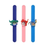 Niedliche Kinderuhr mit Dinosauriermotiv und selbstschließendem Slap-Armband sorgt für bequemes Tragen und einfaches Anlegen. Dank der farblich unterschiedlich gestalteten Minuten- und Stundenzeiger lernen Kinder schnell, die Uhrzeit zu erkennen. Die Uhr hat ein weiches Silikonarmband und ist dank der mitgelieferten LR626-Batterie sofort einsatzbereit.