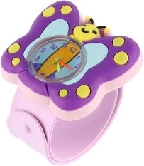Die Kinderuhr mit Schmetterling ist ein tolles Accessoire für kleine Trendsetterinnen und Trendsetter. Das selbstwickelnde Silikonarmband einfach ans Handgelenk legen – die Uhr wickelt sich von selbst herum: schnell, sicher und spielerisch. Ein übersichtliches Zifferblatt mit farblich abgesetzten Zeigern (oder ein gut ablesbares Display bei der digitalen Variante) unterstützt das Lernen der Uhrzeit auf spielerische Weise.
