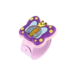 Die Uhr besteht aus weichem und strapazierfähigem Silikon, das sich angenehm anfühlt und gut sitzt. Die Stromversorgung übernimmt die gängige LR626-Batterie. Zur Auswahl stehen zwei Designs/Varianten in Rosa‑Lila-Tönen mit einem niedlichen Schmetterling.