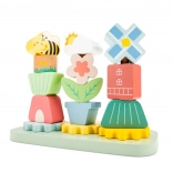 Das Holzstapelspiel Mühlengarten ist ideal für Kinder ab 12 Monaten. Es enthält bunte Holzstücke aus Buchenholz, die Kinder leicht zusammensetzen können. Kreativen Spaß bieten Elemente wie Blumen, Bäume, Windmühlen und Bienen, die auf der Basisplatte mit Stäben gestapelt werden können.