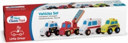 Holzspielzeugset mit Einsatzfahrzeugen für Kinder