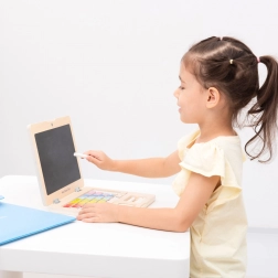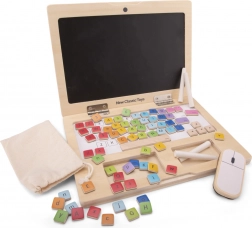 Hölzernes Notebook von New Classic Toys ist das ideale Lernspielzeug für Kinder ab 3 Jahren. Ohne Batterien unterstützt dieser Laptop Kreativität und Lernen durch bunte magnetische Tasten und eine Tafel zum Zeichnen.