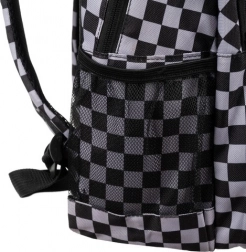 Sie suchen einen universellen Schul- oder Stadtrucksack, der robust, bequem und zugleich ein Hingucker ist? Dieser schwarz‑weiße Schachbrett-Rucksack von KRUZZEL kombiniert strapazierfähiges Oxford 600D mit atmungsaktivem Rückenpanel und EPE-Polsterung für höheren Tragekomfort und Schutz des Inhalts. Zwei seitliche Netztaschen fassen Trinkflaschen, während die Fronttasche und ein reflektierender Streifen die Praktikabilität und Sicherheit in der Dämmerung erhöhen.