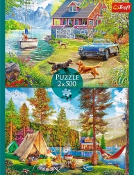 Dieses Set enthält zwei Puzzles mit jeweils 500 Teilen, die gemeinsam Szenen aus dem Sommerleben zeigen. Jedes Puzzle hat die Maße 48 x 34 mm und ist ideal für Entspannung und Spaß für die ganze Familie.
