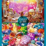 Gönnen Sie sich Stunden der Entspannung und Konzentration mit diesem Set Puzzle 2×500 Teile. Fantasievolle Motive – magische Observatorien und farbige Kristalle – erfreuen Liebhaber schöner Illustrationen ebenso wie begeisterte Puzzler. Jedes fertige Bild misst 48 × 34 cm und eignet sich hervorragend zum Einrahmen.