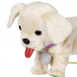Beim Trinken aus dem Näpfchen senkt der Hund den Kopf, streckt die Zunge heraus und man hört Schlürfen. Nach dem Trinken hebt er das Bein und macht Pipi – eine realistische Funktion, die Kinder begeistert und ihre Fantasie beim Rollenspiel rund um die Tierpflege anregt. Der Knochen löst Knuspergeräusche aus, Streicheln über den Rücken sorgt für Schwanzwedeln und fröhliches Bellen.