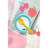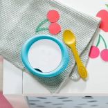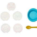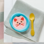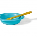 Das Set enthält eine Schüssel, einen Löffel und 5 Kärtchen mit verschiedenen Speisen, die Rollenspiel, Feinmotorik und Fantasie fördern. Alles ist leicht, sicher und einfach zu reinigen – ideal für das tägliche Spielen.