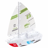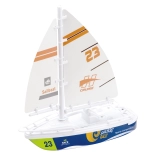 Das Boot ist in zwei attraktiven Farben erhältlich – Blau und Weiß. Der Betrieb erfordert zwei AA-Batterien, die nicht im Lieferumfang enthalten sind, und es verfügt über einen ON/OFF-Schalter oberhalb des Motors für eine einfache Bedienung. Es bietet ein realistisches Rennerlebnis, das Kinder und Erwachsene begeistert.