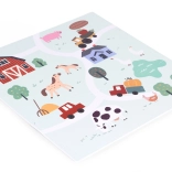 Das fröhliche Bauernhofmotiv mit Tieren, Scheune und Wegen fördert die Vorstellungskraft und die sensorische Entwicklung. Aus 21 Teilen entsteht eine stabile Spielfläche, und dank der Randstücke mit „Zähnchen“ lassen sich auch einfache 3D-Formen bauen. Das EVA-Material ist angenehm zu berühren, rutschfest und leicht zu reinigen – einfach mit einem feuchten Tuch abwischen.