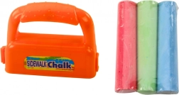 Der ergonomische Halter fasst drei Kreiden gleichzeitig, sodass Kinder mühelos breite, markante Streifen erzeugen, ohne sich die Hände schmutzig zu machen. Die dicken Kreiden liegen gut in der Hand, hinterlassen satte Spuren und fördern die Entwicklung der Feinmotorik sowie die Hand-Auge-Koordination.