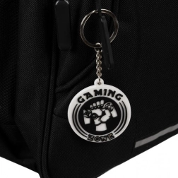 Hauptfach mit zwei Schiebern, gepolstertes Laptopfach, Fronttasche, seitliche Netze für die Flasche und ein reflektierender Streifen für bessere Sichtbarkeit.