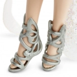 Violette Rüschenkleider, ein Perlengürtel und glitzernde Details verleihen der Puppe einen märchenhaften Look, der bei jeder Präsentation glänzt.