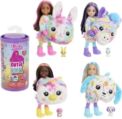 Die Barbie Cutie Reveal Chelsea Bunte Träume Puppen bringen Kindern Spaß am Entdecken und fantasievolles Styling. Das niedliche Plüschkostüm (Häschen, Zebra, Pinguin oder Dalmatiner) verwandelt sich nach dem Enthüllen in einen Oversize-Mantel für die Puppe und der Kostümkopf in ein Körbchen für das Mini-Tier. Jede Box enthält bis zu 6 Überraschungen und fördert Fantasie sowie Feinmotorik.