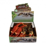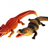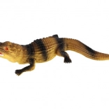 Dieses Plastkrokodil hat detaillierte Schuppen und ein geöffnetes Maul, was es zu einer originalgetreuen Nachbildung eines echten Krokodils macht.