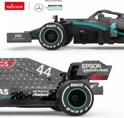Das Modell ist für Spielspaß und Ausstellung konzipiert – die aerodynamische Silhouette, Sponsorenlogos und die ikonischen Mercedes‑Farben machen es zu einem Blickfang in jeder Sammlung. Eine großartige Wahl für Familienspaß, freundschaftliche Duelle und als Geschenk für Fans der Formel 1.