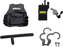 - Realistisches Zubehör: Weste, Schlagstock, Handschellen, Pfeife, Funkgerät