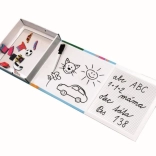 Ermöglicht die Kombination aus Schreiben, Wischen und Zusammenstellen magnetischer Bilder in einem Set. Dieses Set ist ideal, um das Schreiben von Buchstaben und Zahlen zu üben und bietet gleichzeitig viel freie Fläche zum Malen mit dem abwischbaren Stift.