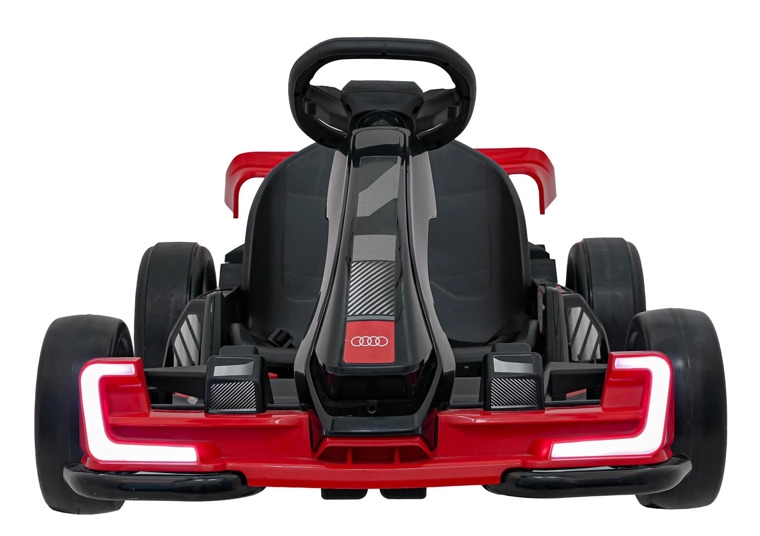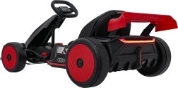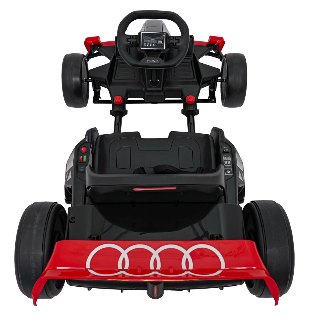 Erleben Sie eine adrenalinstarke Fahrt mit dem Audi Kinder-Gokart mit Drift-Funktion. Leistungsstarker Antrieb 2×150 W, Akku 24 V 7 Ah, DRIFT/SPORT-Schalter und LED-Beleuchtung für maximalen Spaß und Sicherheit. Vorderes EVA-Schaumrad und spezielle Hinterräder für Drifts sorgen für Stabilität, Kontrolle und epische Slides.