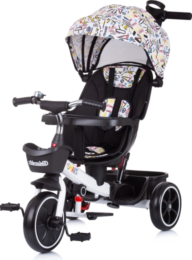 Multifunktionales Produkt Chipolino Dreirad mit Verdeck Futuro mit 2 verschiedenen Nutzungsmöglichkeiten – der Elternteil schiebt das Kind oder das Kind steuert das Spielzeug selbst mit den Pedalen. Das Dreirad wird zu einem großartigen Begleiter, der mit dem Kind mitwächst.