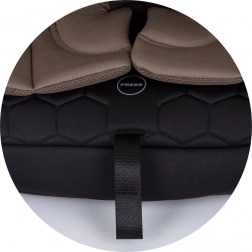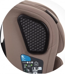 Für Sicherheit sorgen das SPS-System für verbesserten Seitenaufprallschutz und die Homologation nach ECE R129 i-Size, die strenge Front-, Heck- und Seiten-Crashtests mit fortschrittlichen Q-Dummies umfasst. Für Komfort sorgen die weiche Polsterung, 5-Punkt-Gurte mit Polstern und ein leicht abnehmbarer und waschbarer Bezug. Dank der verstellbaren Kopfstütze und der Einlage ist der Sitz sowohl für kleinere als auch größere Kinder geeignet.