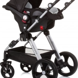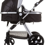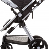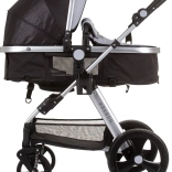 Der leichte Rahmen aus Legierung ist einfach zu handhaben, die gefederten Schnellspannräder meistern Stadt und raueres Gelände, die Hinterräder verfügen über eine zuverlässige Gliederbremse. Das große verstellbare Verdeck mit abnehmbarer Sonnenblende, 5-Punkt-Gurte mit weicher Polsterung und die neue Stabilisierungssicherung für Sitz und Wanne (Kollektion 2024) erhöhen Sicherheit und Komfort.