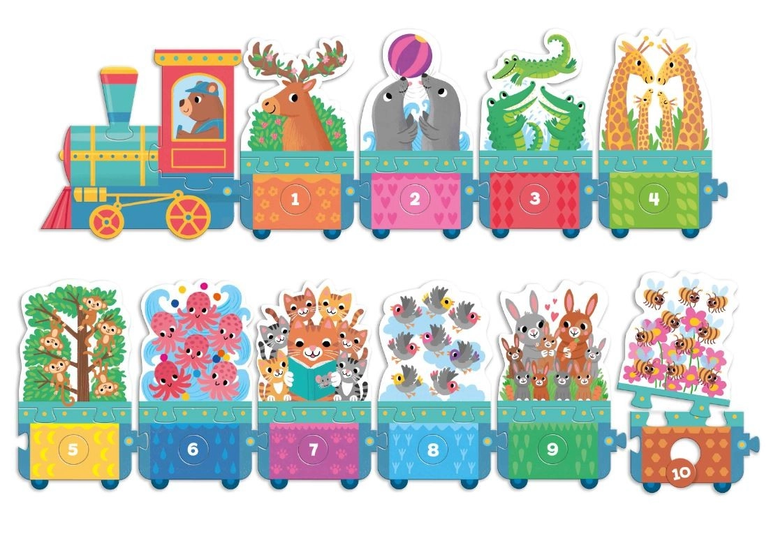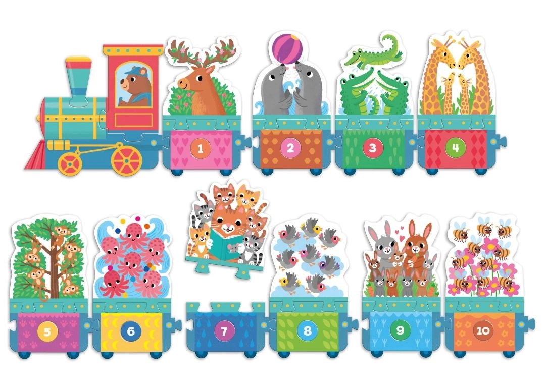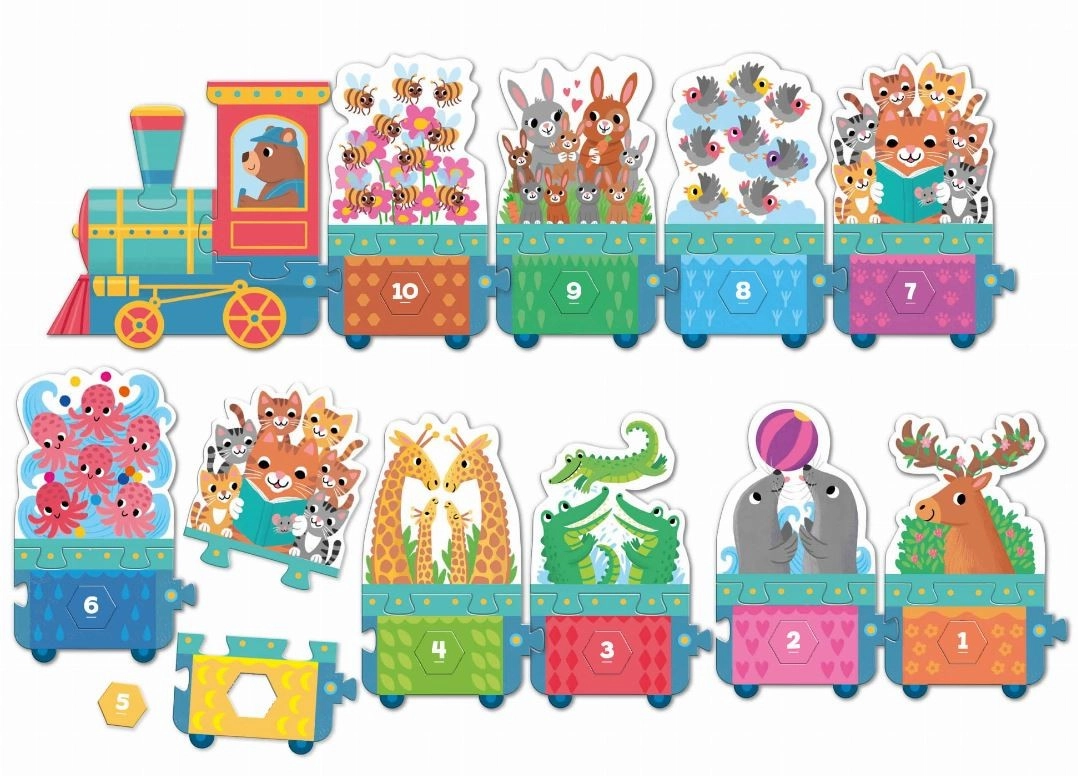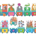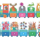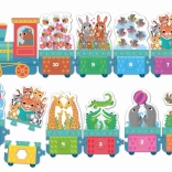 Zeit, weiterzufahren! Gleich geht es los! Es ist Zeit, die letzten Waggons anzukuppeln. Wie viele Affen transportieren wir heute? Fährt auch der Elefant mit? Welcher Waggon hat die meisten Tiere?