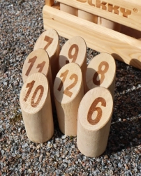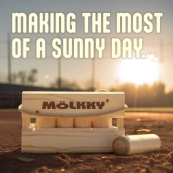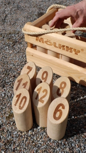 Mölkky ist ein Spiel, das Einfachheit mit Taktik und Glück verbindet und Spieler unabhängig von ihrem Alter anspricht. Die Spieler werfen mit einem Holzstab und versuchen, nummerierte Kegel umzuwerfen. Ziel ist es, genau 50 Punkte zu erreichen, aber Vorsicht, Überschreitung dieser Punktzahl bedeutet einen Rückfall auf 25 Punkte.