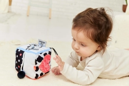 Dieser kuschelweiche sensorische Würfel ist für die kleinsten Entdecker konzipiert. Jede der sechs Seiten bietet ein anderes Sinneserlebnis – von kontrastreichen schwarz-weißen Mustern mit farbigen Akzenten bis hin zu vielfältigen Stoffen und Oberflächen, die zum Berühren und Erkunden einladen. Niedliche Motive von Kuh und Tiger wecken Neugier und helfen dem Kind, Formen und Emotionen wahrzunehmen.