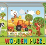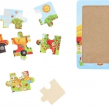 Das Holzpuzzle Ernte mit 9 Teilen ist eine großartige Wahl für die ersten Puzzleversuche. Dank der hochwertigen Holzgrundplatte und der robusten Teile lassen sie sich gut greifen, und jeder Erfolg stärkt das Selbstvertrauen. Die eingefräste Kante der Grundplatte hilft, die Teile an die richtige Stelle zu führen.