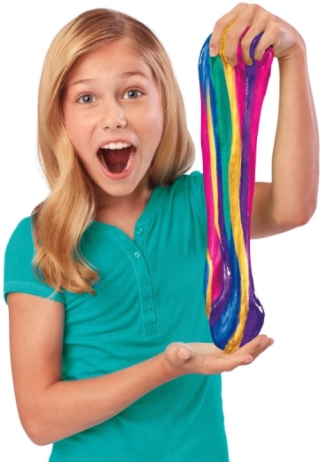 Kreiere schillernde Schleime mit metallischem Glanz. Farbige Pigmente und Glitter lassen sich direkt in die Kammer dosieren – für effektvolle Wirbel und irisierende Farbtöne.