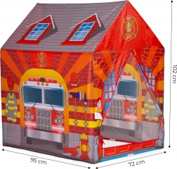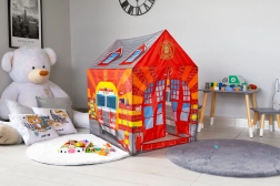 Das Kinderzelt Feuerwehrstation begeistert alle kleinen Helden. Realistische Drucke des Feuerwehrfahrzeugs und der Ausrüstung regen Kinder zu Rollenspiel-Aktivitäten und selbstständigem Spiel an. Die leichte, dennoch stabile Konstruktion und der strapazierfähige Polyesterbezug gewährleisten einen einfachen Transport und eine sichere Nutzung zu Hause und im Freien.