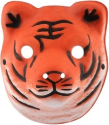 Eine orangefarbene Tigermaske mit markanten schwarzen Streifen, ideal für alle kleinen Tierliebhaber.