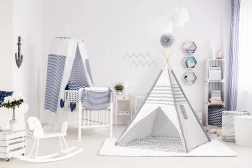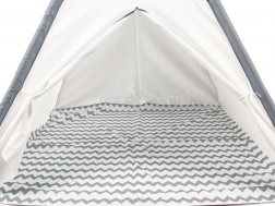 Das Zelt ist in 10 Minuten aufgebaut. Der Bezug ist abwaschbar, und das zusammengelegte Tipi lässt sich leicht im Schrank verstauen.