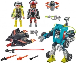 Entdecken Sie die actionreiche Welt von PLAYMOBIL: Das Set Roboter vs. Gleiter bietet alles für mitreißende Gefechte und wagemutige Missionen. Ein fliegender Gleiter mit Schussfunktion, ein beweglicher Roboter mit Abschussvorrichtung und Drohne sowie ein Figuren-Duo fördern die kreative Spielwelt und die Fantasie.